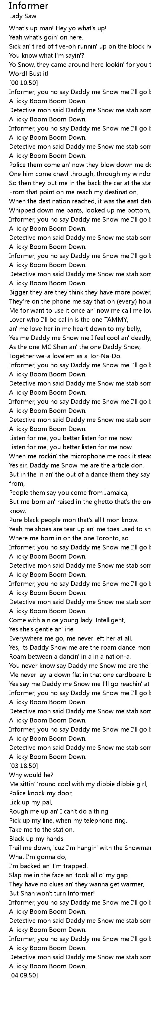 Informer, you no say Daddy me Snow me I'll go blame, |