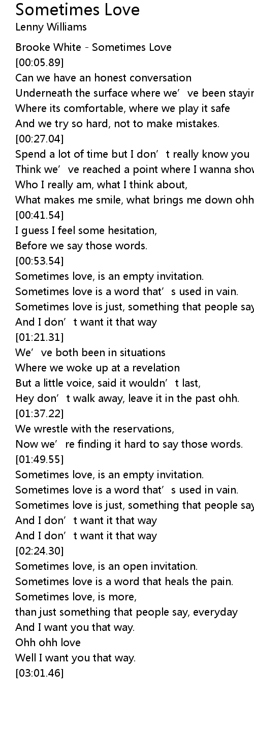 | [02:03.99] | Sometimes love is just, something that people say, everyday |