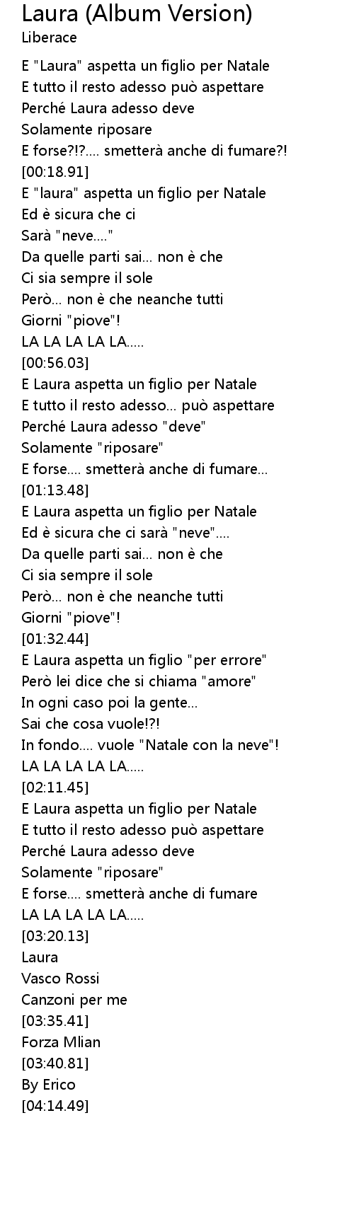 | [00:20.48] | E "laura" aspetta un figlio per Natale |