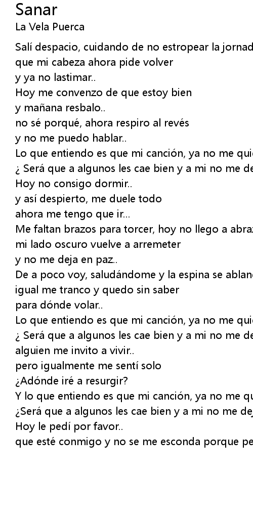 | Y lo que entiendo es que mi cancio n, ya no me quiere sanar | |