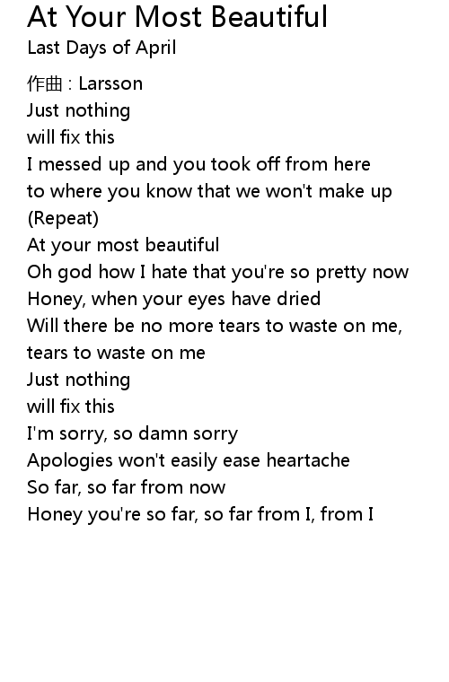 | Song | At Your Most Beautiful |