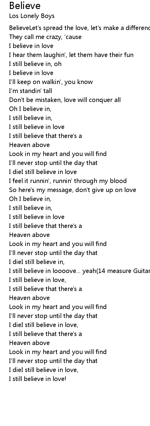 I still believe in, |