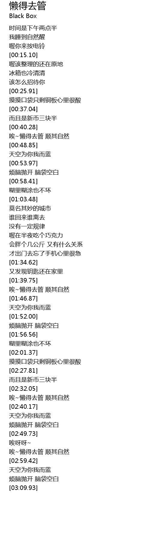 | [02:55.24] | 唉~懒得去管 顺其自然 |