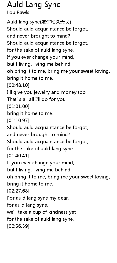 | [00:00.00] | Auld lang syne yǒu yì dì jiǔ tiān cháng |