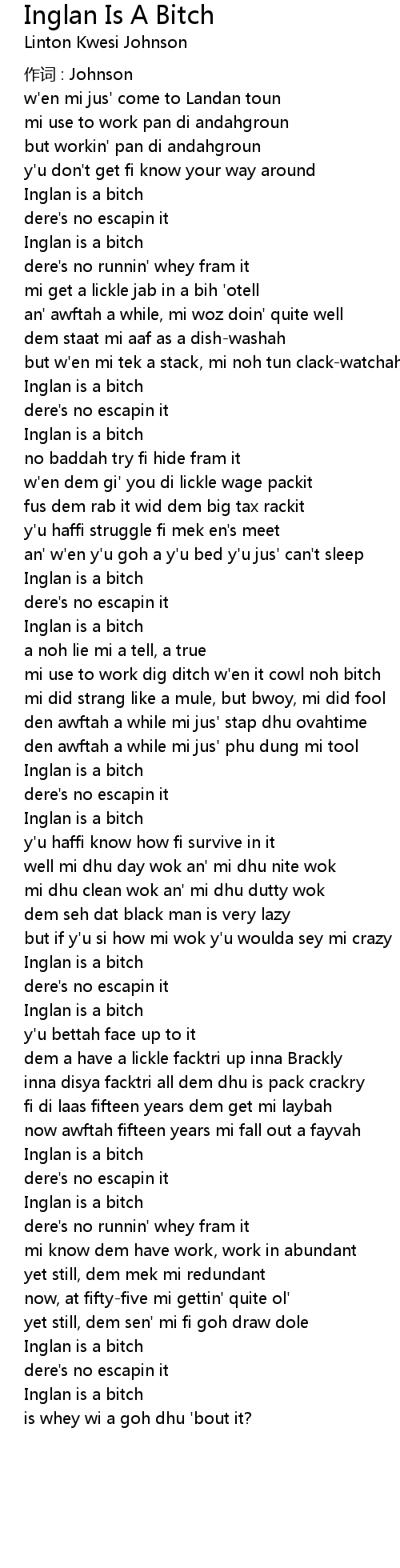 | Song | Inglan Is A Bitch |