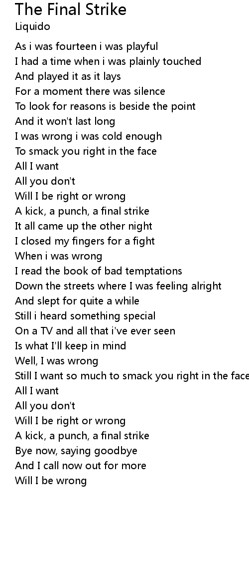 | A kick, a punch, a final strike | |