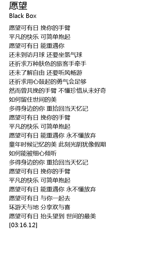 | [03:04.64] | yuàn wàng kě yǒu rì tái tóu wàng dào shì jiān de zuì měi |