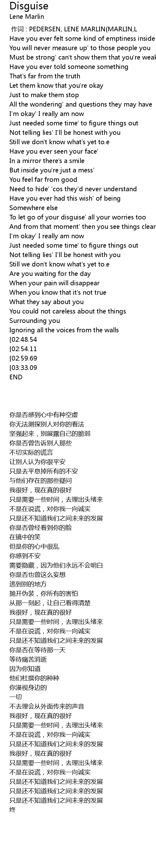 | [00:00.00] | 作词 : PEDERSEN, LENE MARLIN(MARLIN,L |