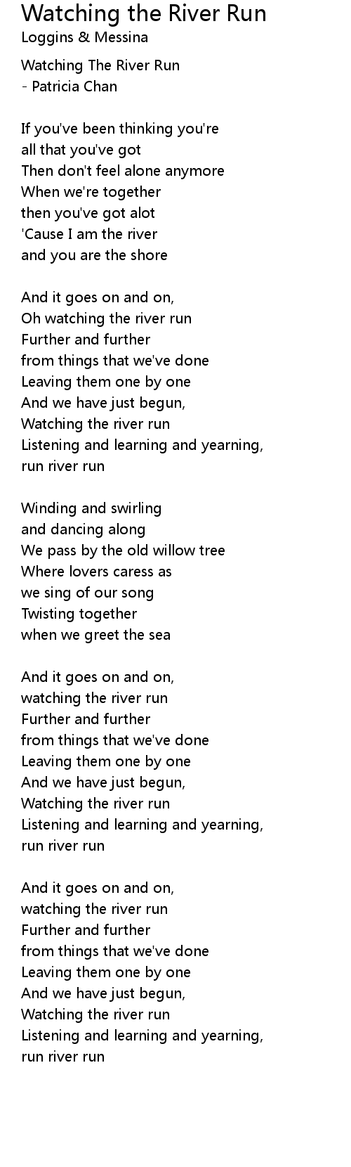 Oh watching the river run |