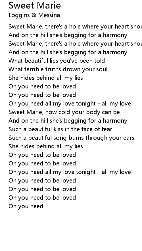 Oh you need to be loved |