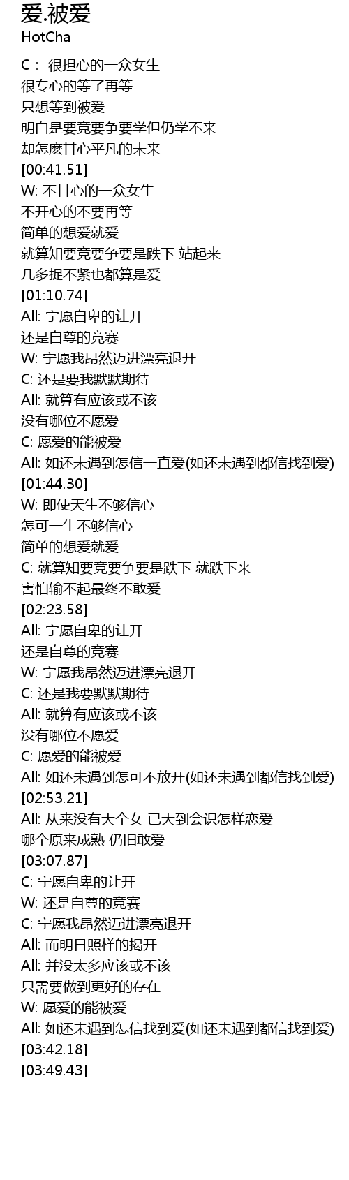 | [02:46.53] | C: 愿爱的能被爱 |