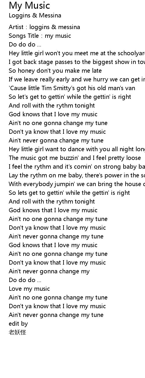 | [00:12.32] | Hey little girl won't you meet me at the schoolyard gate |