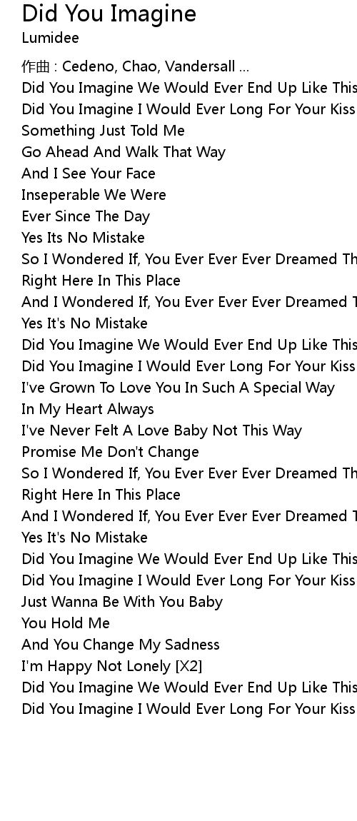 | And I Wondered If, You Ever Ever Ever Dreamed That This Could Be True | |