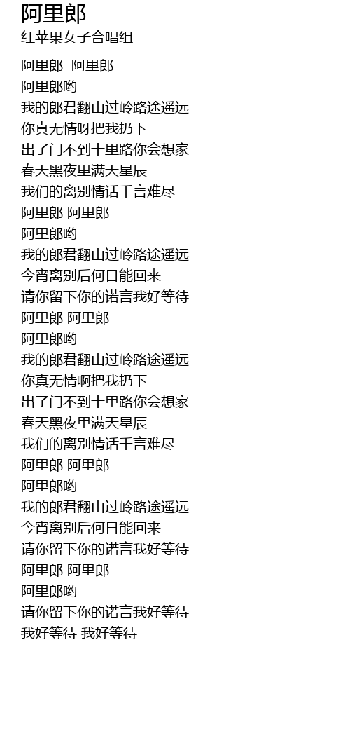 | [02:43.00] | a lǐ láng a lǐ láng |