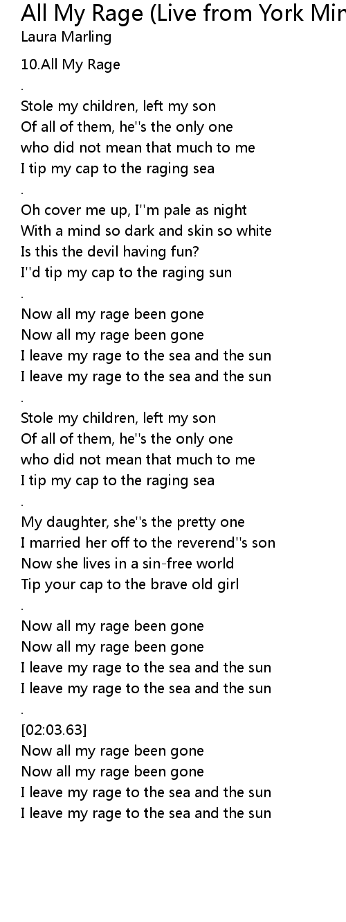 Now all my rage been gone |