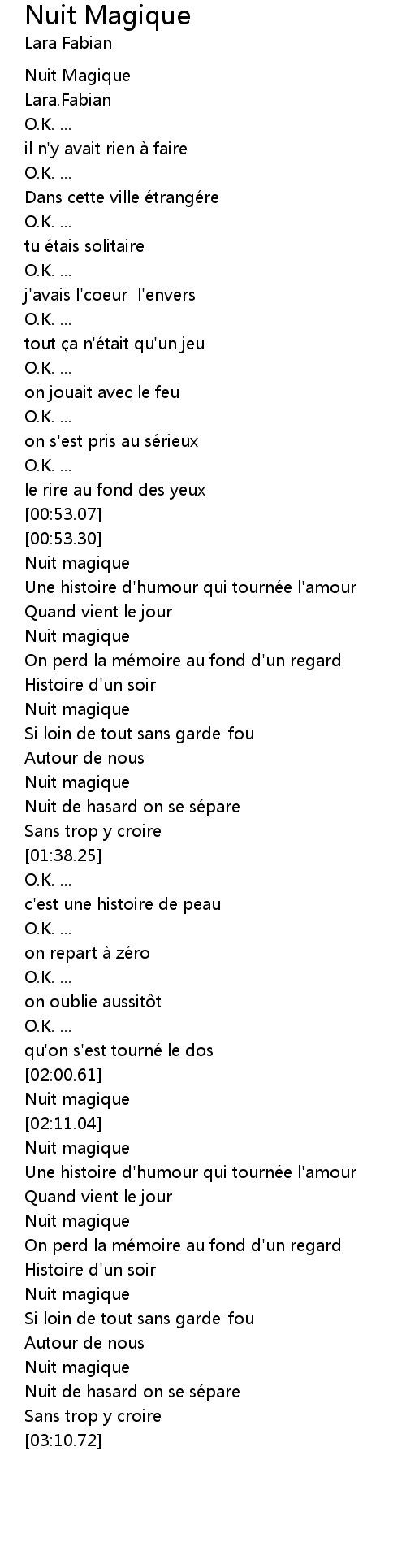 | [00:53.81] | Nuit magique |
