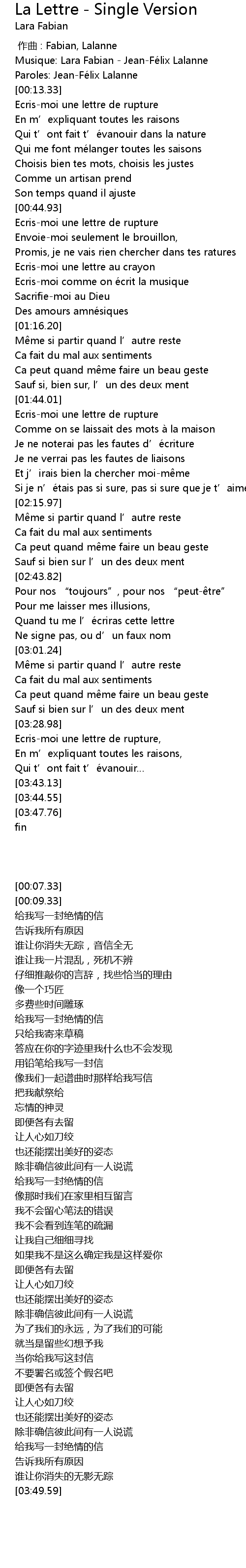 | [00:07.33] | Musique: Lara Fabian - Jean-Félix Lalanne |