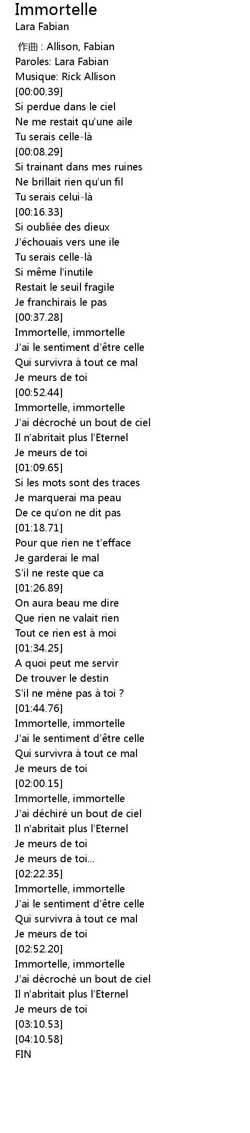 | [00:41.21] | J' ai le sentiment d' tre celle |