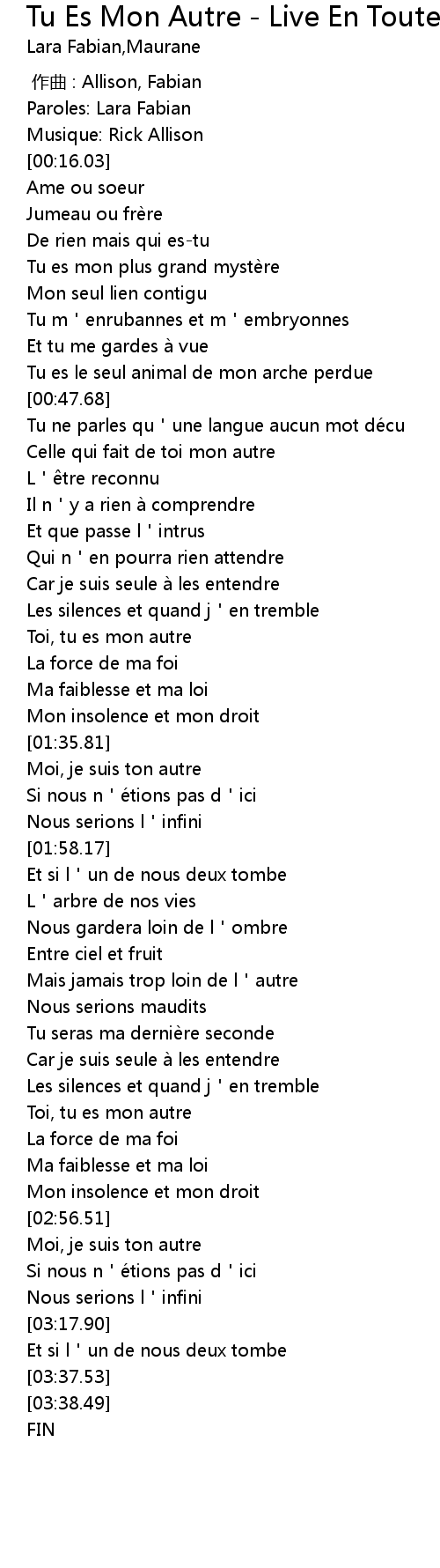 | [02:41.74] | Toi, tu es mon autre |