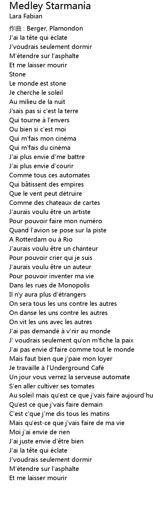 | Song | Medley Starmania |
