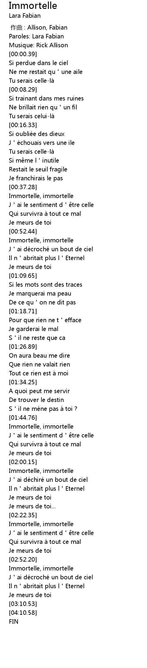 | [00:00.19] | Paroles: Lara Fabian |