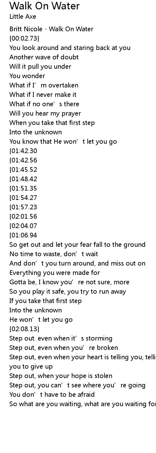 | [00:01.12] | Britt Nicole Walk On Water |