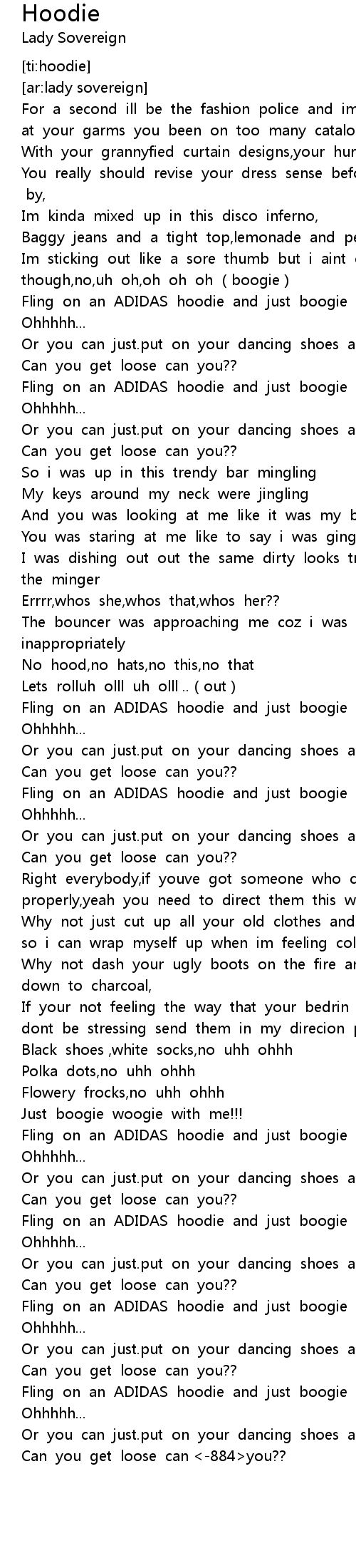 | [00:37.58] | Fling on an ADIDAS hoodie and just boogie woogie with me |
