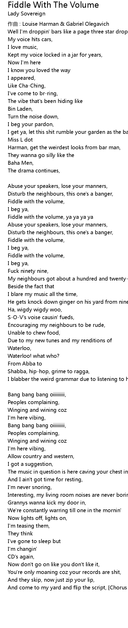 | Fiddle with the volume, ya ya ya ya | |