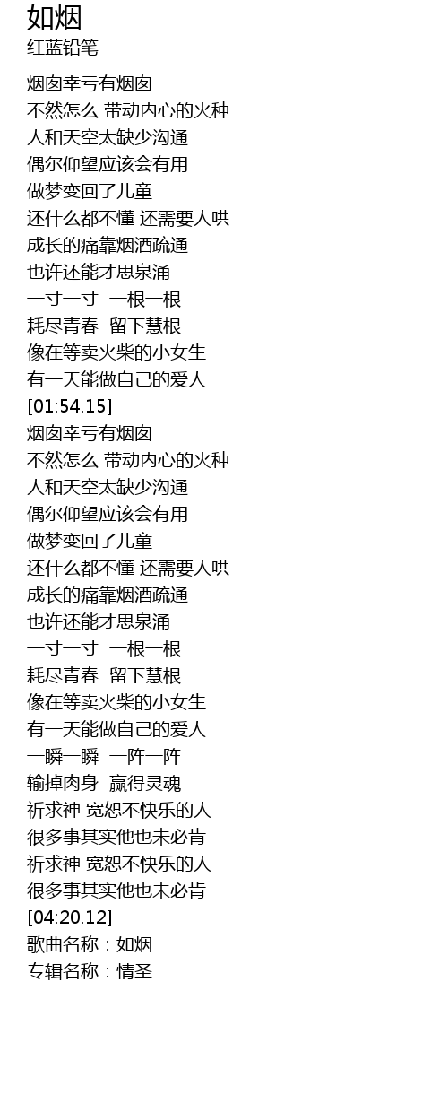 | [04:22.34] | 歌曲名称:如烟 |