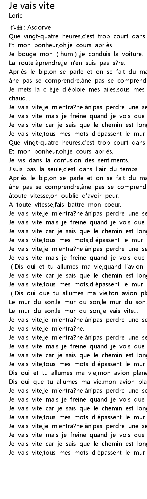 | [00:39.440] | Je vais vite mais je freine quand je vois que tu tombes. |