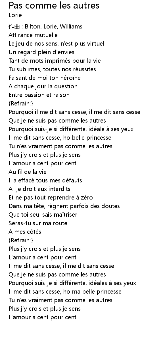 | Song | Pas comme les autres |