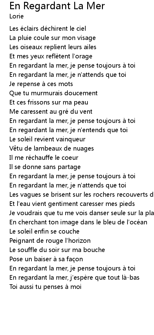 | En regardant la mer, j'espère que tout là-bas | |