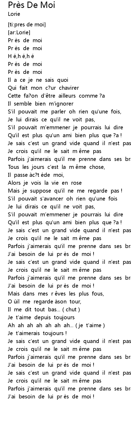| [00:25.708] | Pr è s de moi |