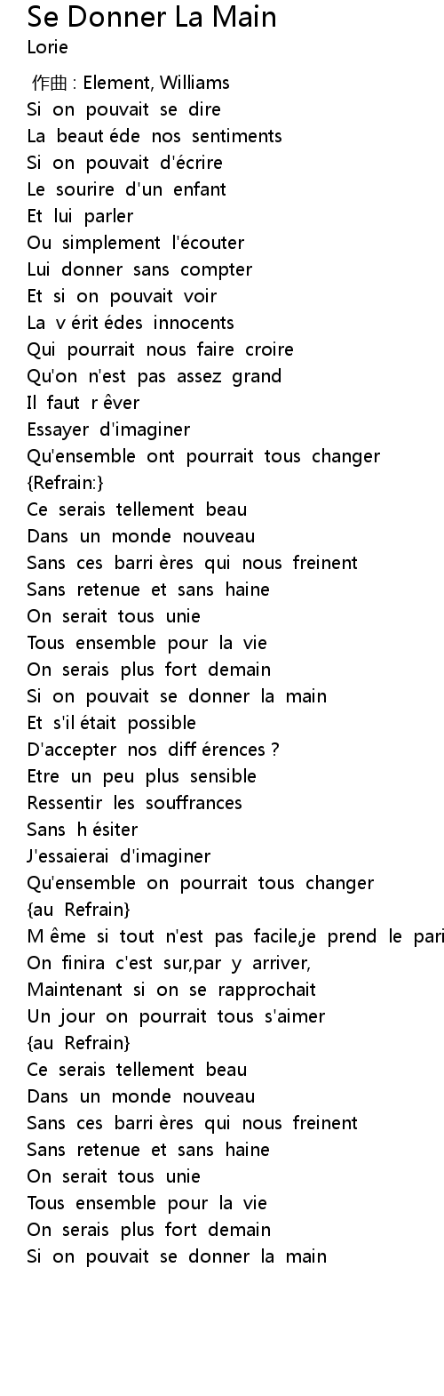| [01:41.285] | Si on pouvait se donner la main |