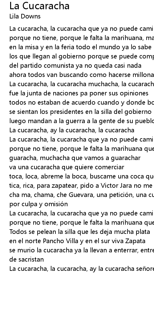 | La cucaracha, la cucaracha, ay la cucaracha señores |