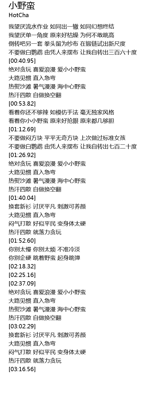 | [02:49.56] | 绝对贪玩 喜爱浪漫 爱小小野蛮 |