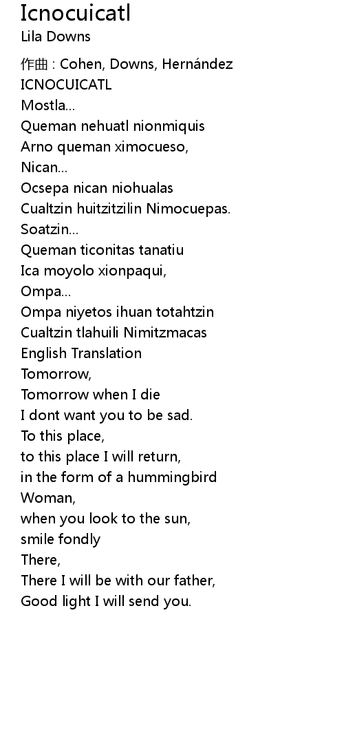 | Song | Icnocuicatl |