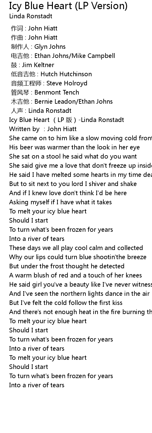 | [00:00.243] | Icy Blue Heart (LP 版)-Linda Ronstadt |