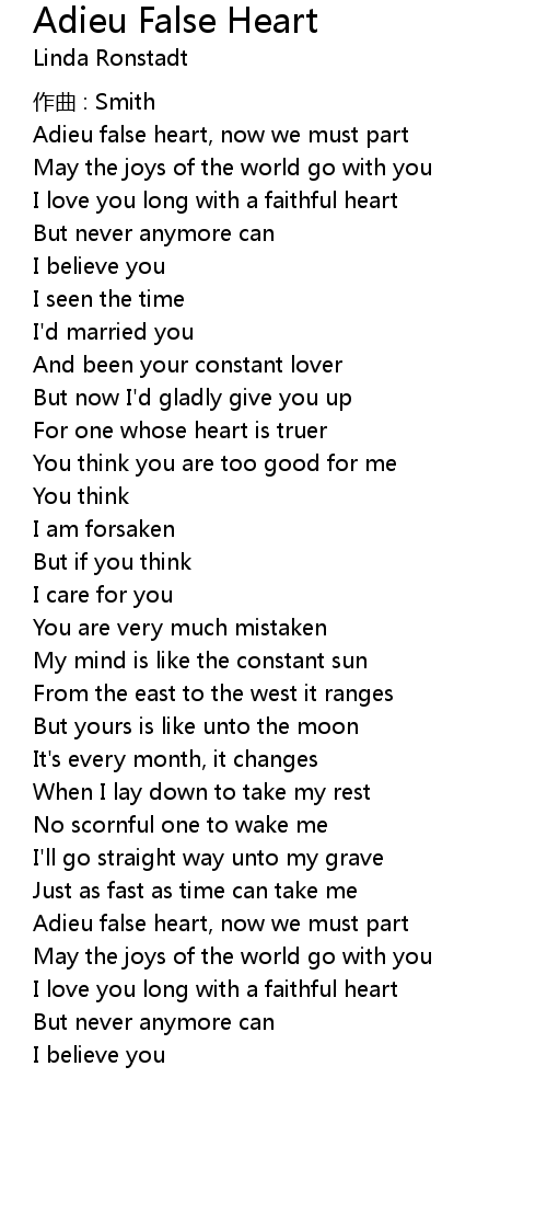 | Song | Adieu False Heart |