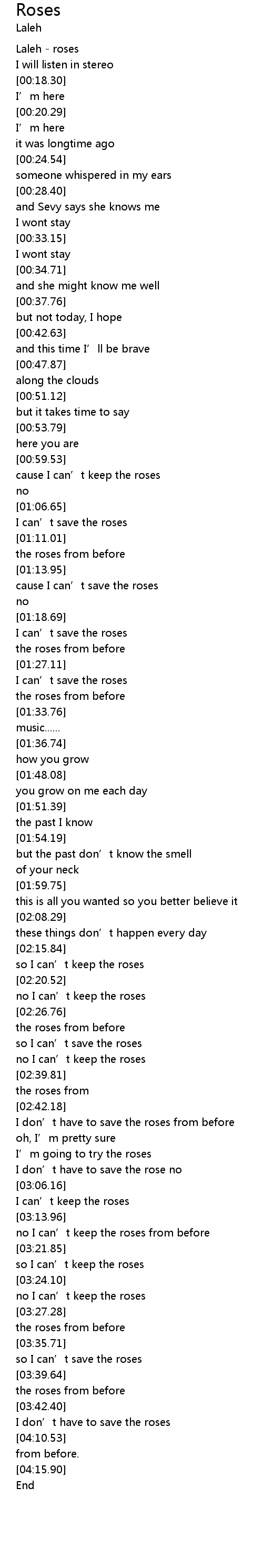 | [00:01.47] | Laleh - roses |