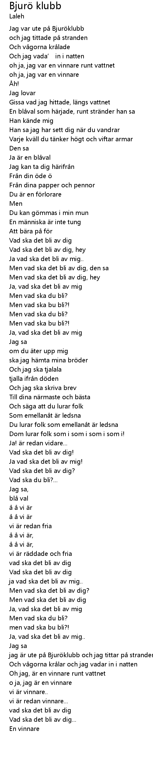 | Song | Bjurö klubb |