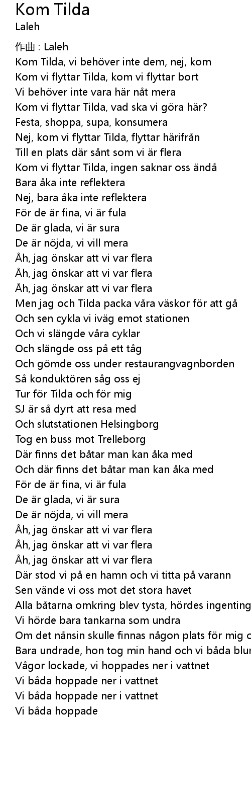 | Kom Tilda, vi behöver inte dem, nej, kom | |