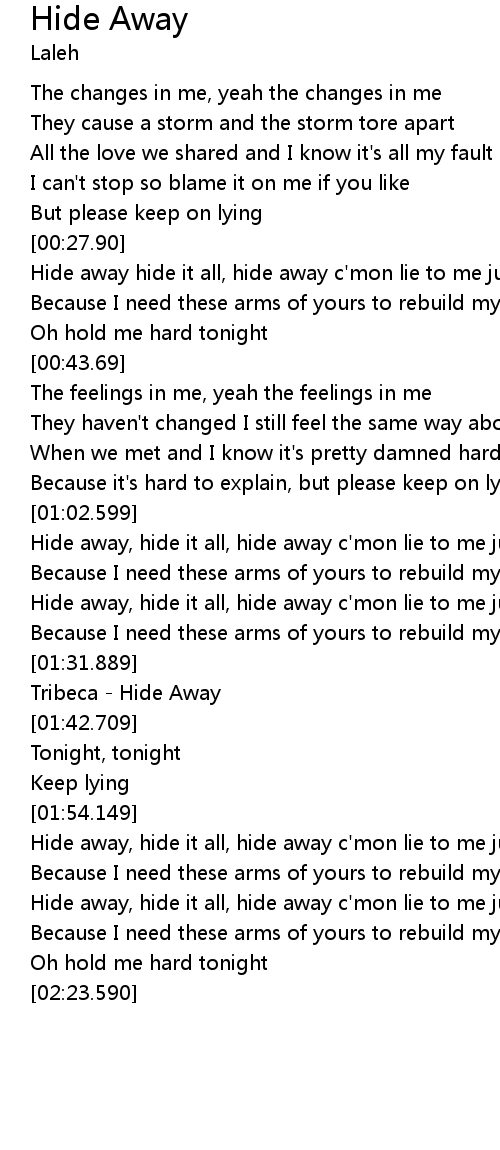 | [01:02.899] | Hide away, hide it all, hide away c'mon lie to me just on more time |