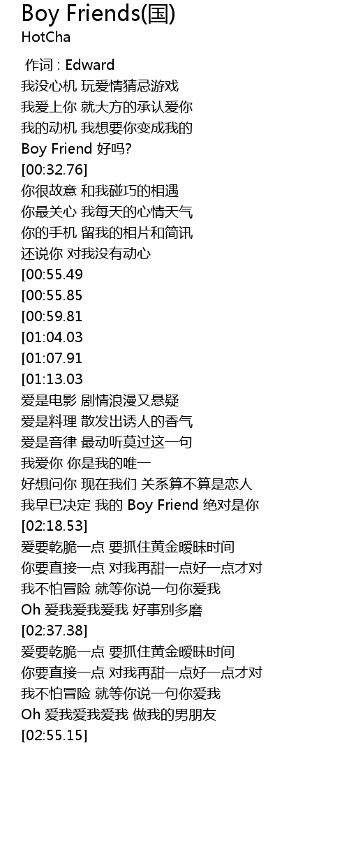 | [02:49.98] | Oh 爱我爱我爱我 做我的男朋友 |