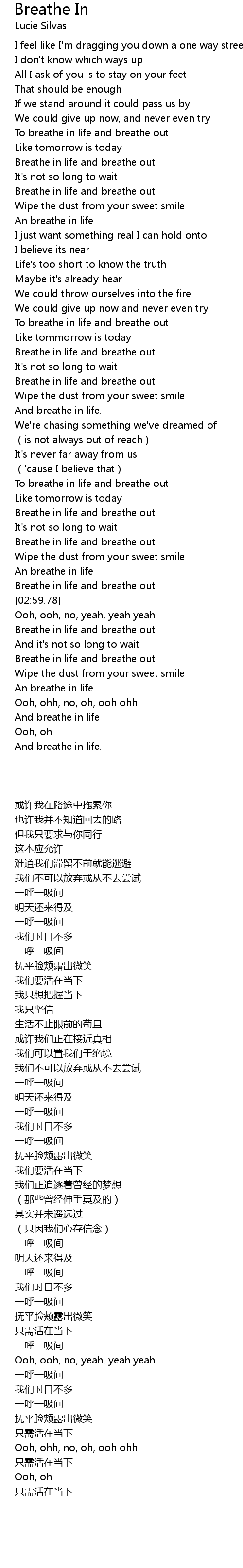 | [01:44.43] | To breathe in life and breathe out |