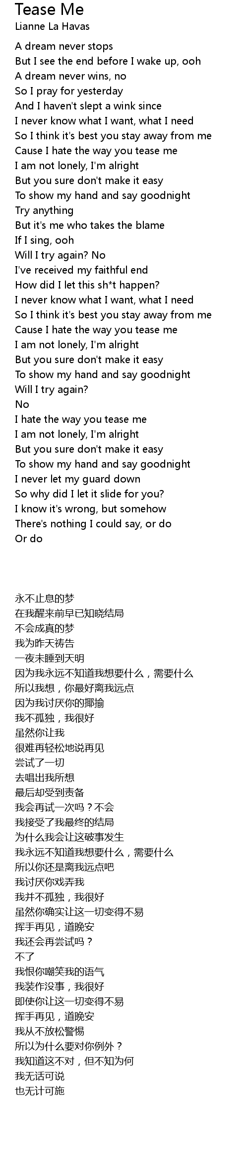 Cause I hate the way you tease me |