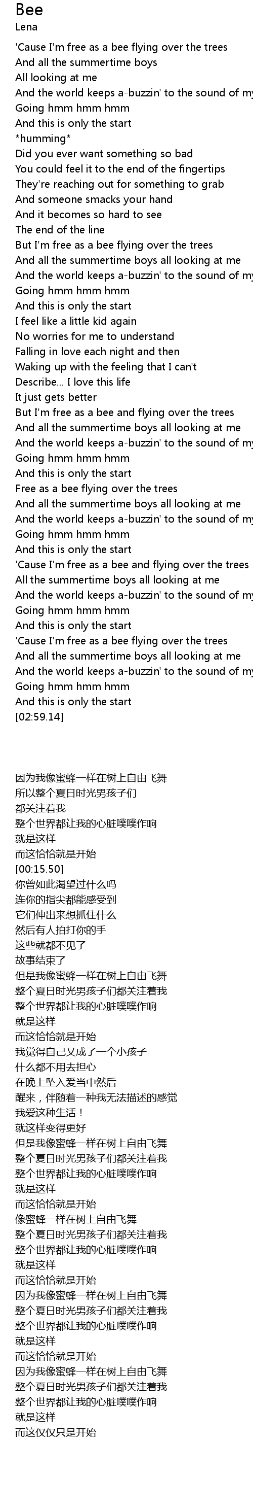 'Cause I'm free as a bee flying over the trees |