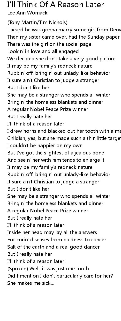 I'll think of a reason later |
