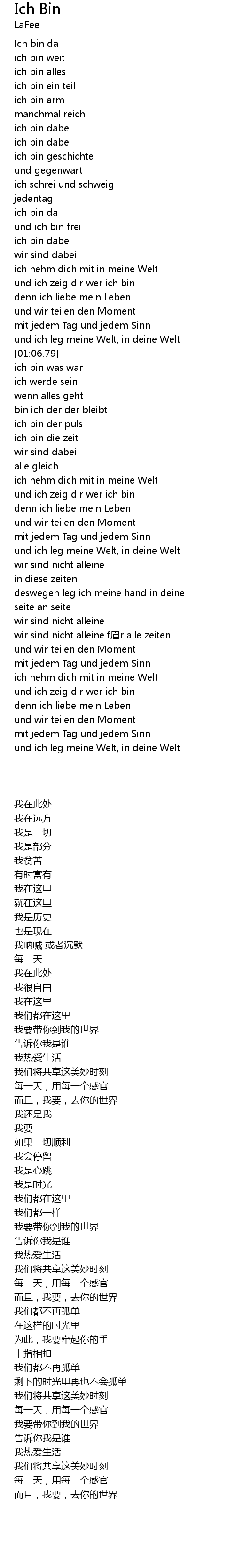 | [00:45.17] | und ich zeig dir wer ich bin |