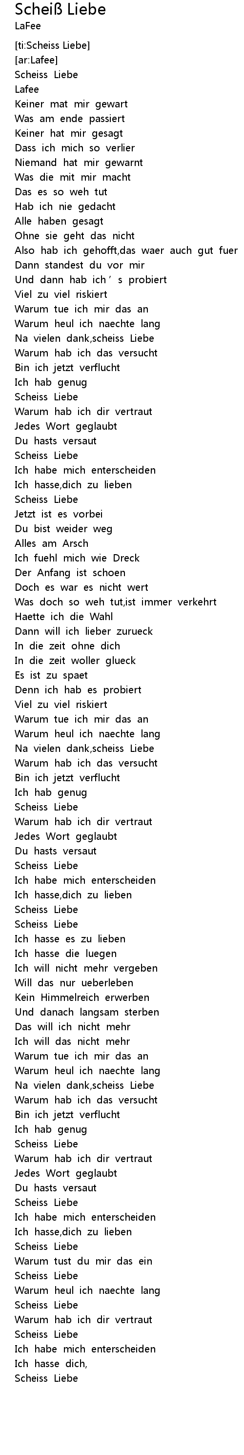 | [01:50.71] | Na vielen dank, scheiss Liebe |